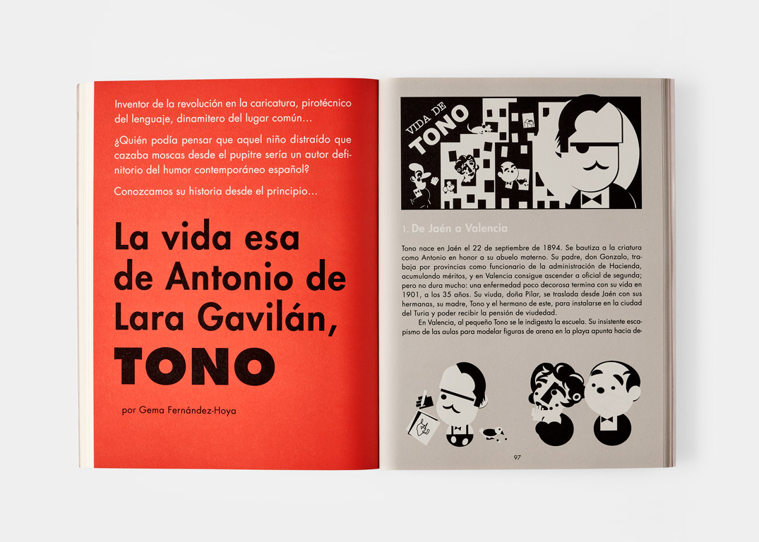 La tonóloga Gema Fernández-Hoya ha escrito una «Vida de Tono» en breves capítulos que se puede leer mientras se picotean aceitunas en honor del autor. Aunque hay que decir que en ninguna enciclopedia, por gorda que sea, encontrarán los interesados tanta información sobre Antonio de Lara Gavilán, Tono como en este tebeo.
