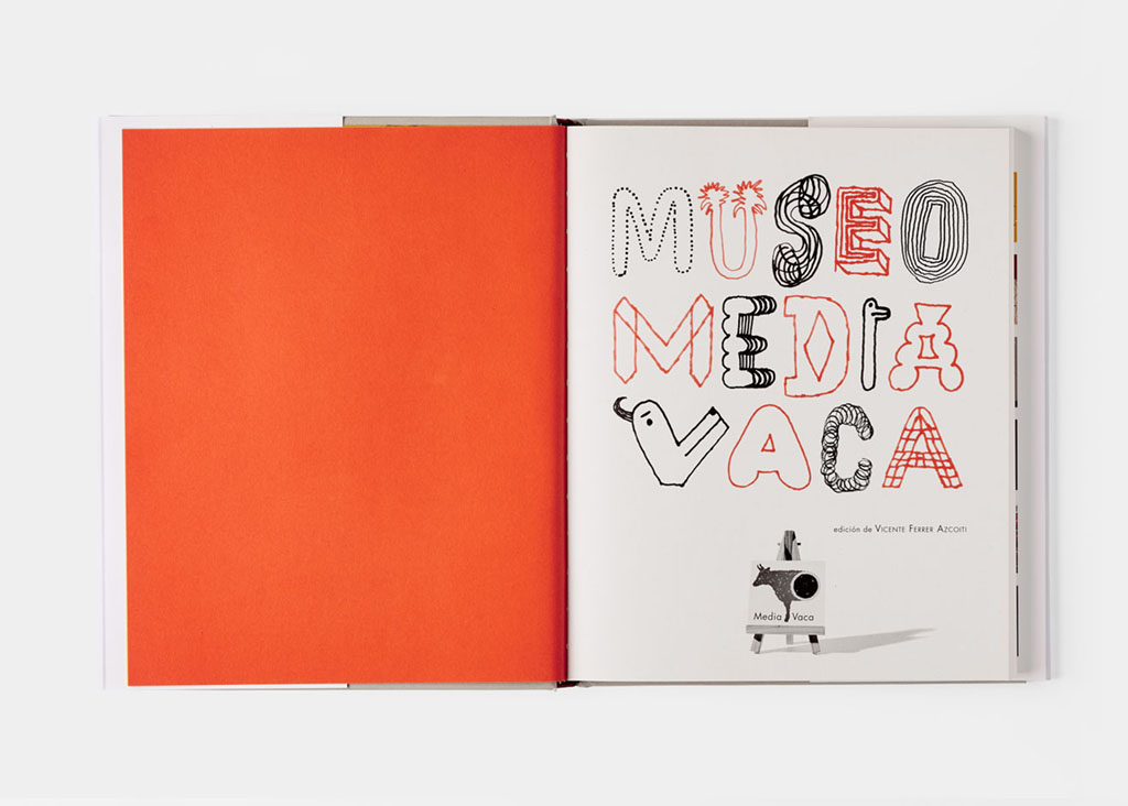 Este Museo Media Vaca es una obra colectiva donde participan treinta y un ilustradores; se trata, en su mayoría, de jóvenes profesionales al comienzo de sus carreras. A cada uno de ellos se les pidió que seleccionaran dos obras de cualquier artista y período (aquellas que consideraran sus favoritas) y que hicieran una versión personal, en un formato dado y usando solo dos colores. Más tarde, mostramos estas nuevas imágenes a grupos de niños de entre 6 y 12 años, que nos ofrecieron generosamente sus interesantes opiniones y muy divertidos comentarios.